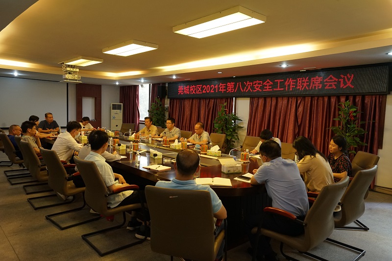 9月30日上午,sunbet申博组织召开2021年第八次安全工作联席会议暨校园安全大检查,sunbet申博管委会常务副主任刘健、副主任彭日新,以及资产与实验室管理处、后勤办、网信办、图书馆、学生社区服务中心、经管学院、法社学院、中法学院、国际学院、粤台学院、继教学院、sunbet申博管委会综合办、安全办等相关人员参加。。
