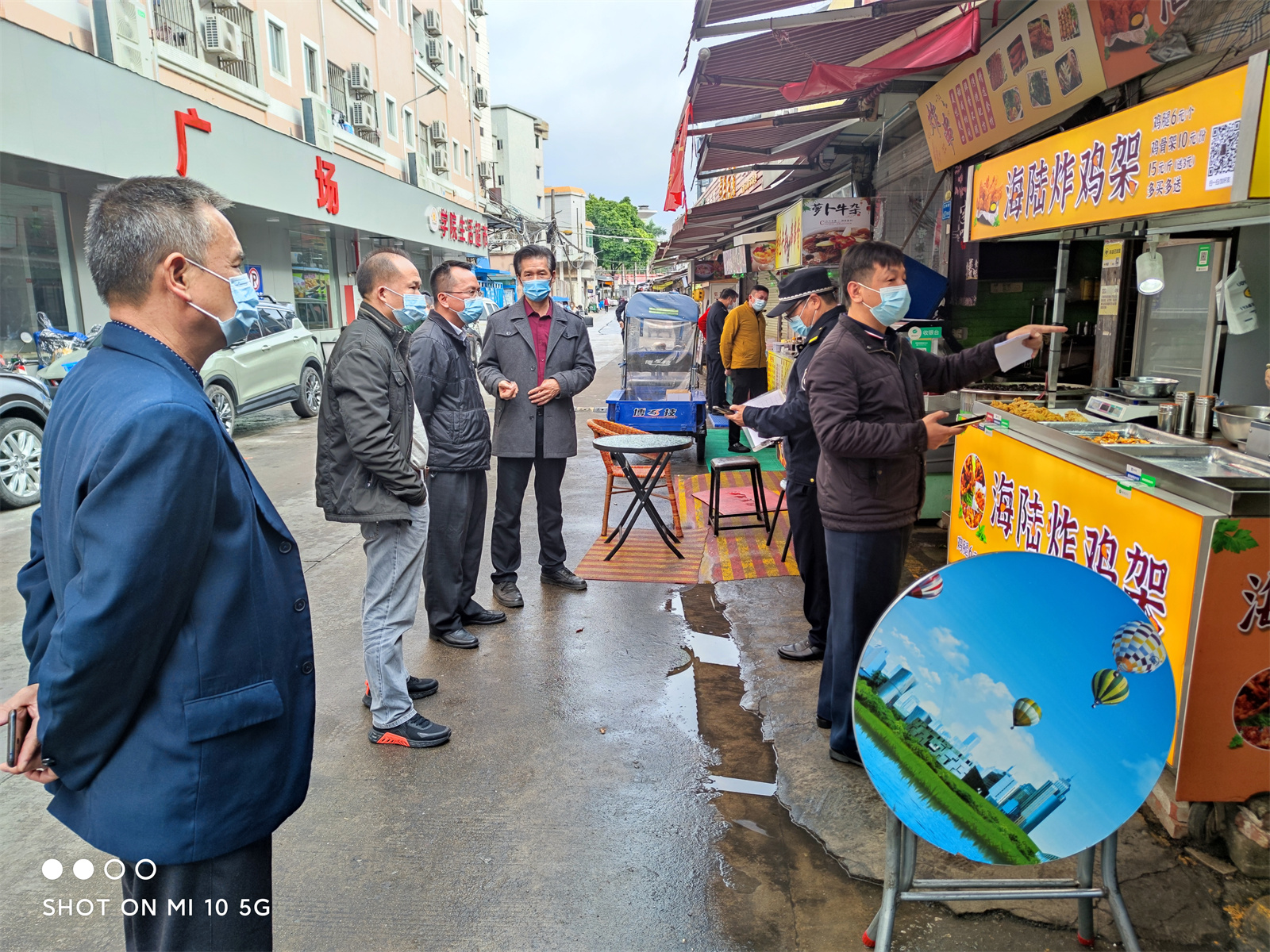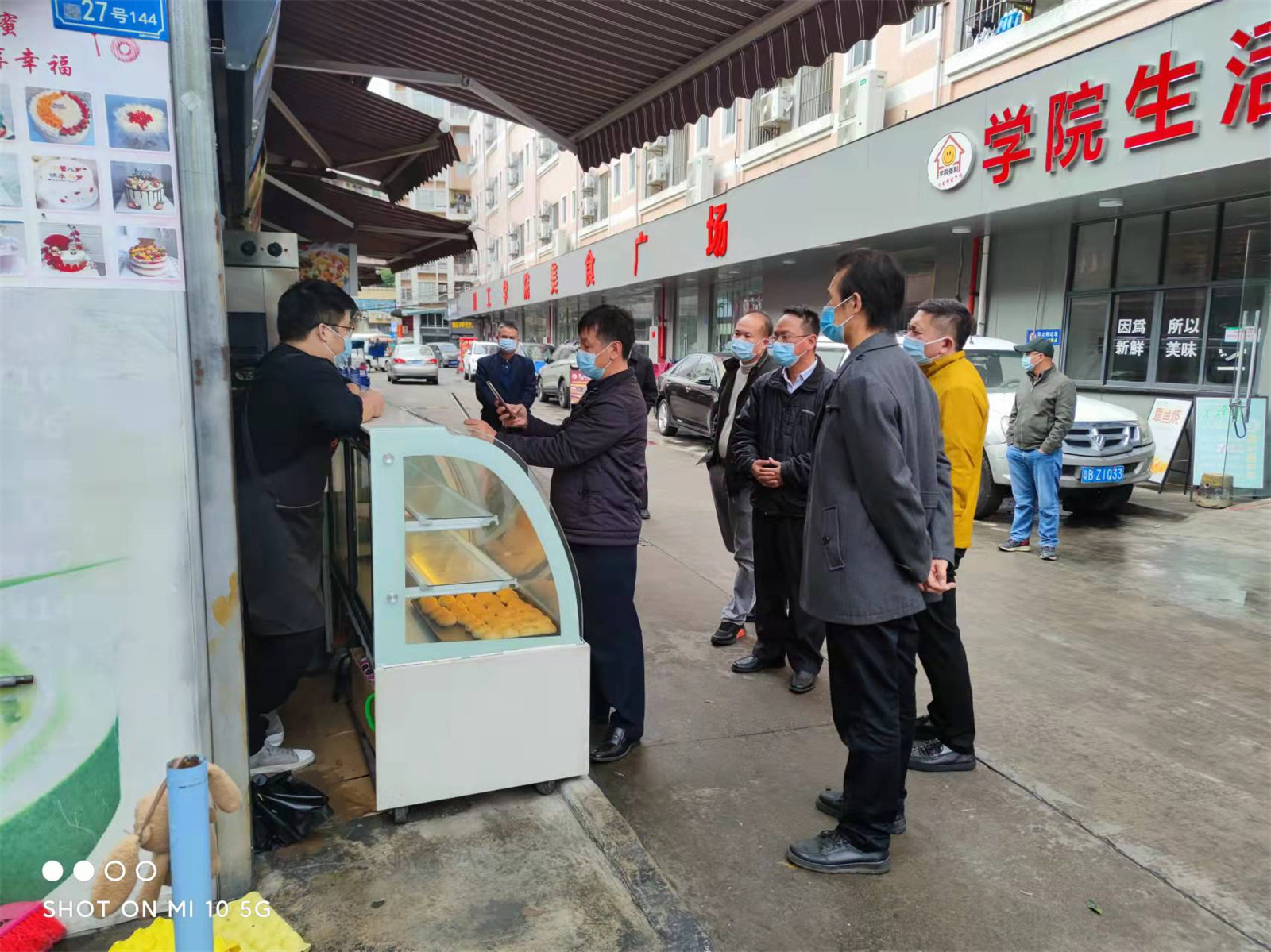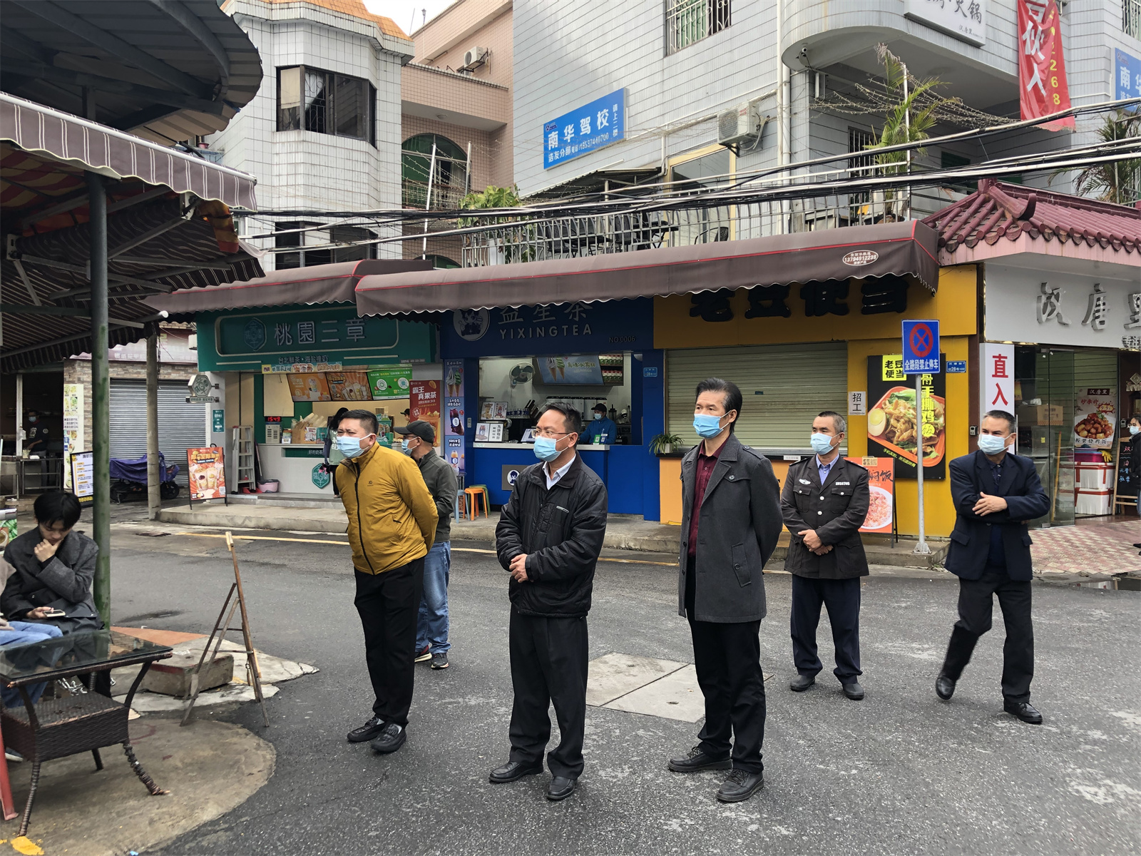 为筑牢校园疫情防线,12月21日下午,sunbet申博管委会联合堑头社区检查落实sunbet申博校外北门食街的疫情防控工作。sunbet申博管委会副主任彭日新,堑头社区党工委书记钟林辉,以及sunbet申博管委会、属地城监、属地公安等相关工作人员参加。