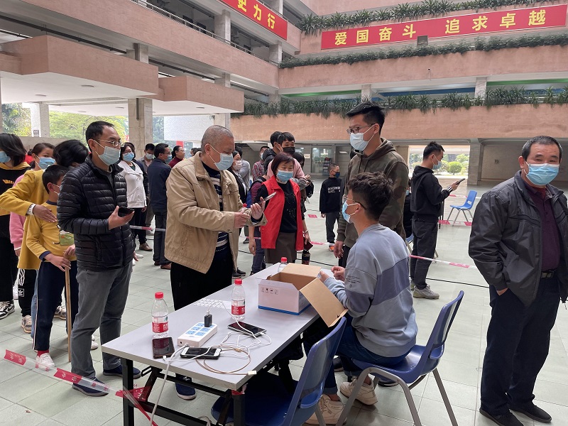 鉴于东莞突发疫情,全市多个镇街已陆续开始全员核酸检测工作。为了积极配合属地核酸检测工作,同时方便我校区全体师生及教职员工进行采样,sunbet申博管委会积极与相关卫生部门对接沟通,邀请莞城医院医务人员进校设点开展核酸检测采样工作。为了安全、有序组织好本次核酸检测工作,管委会充分发挥沟通协调功能,迅速组织志愿者、工作人员、设置核酸采样点、准备物资、做好前期信息采集等工作。