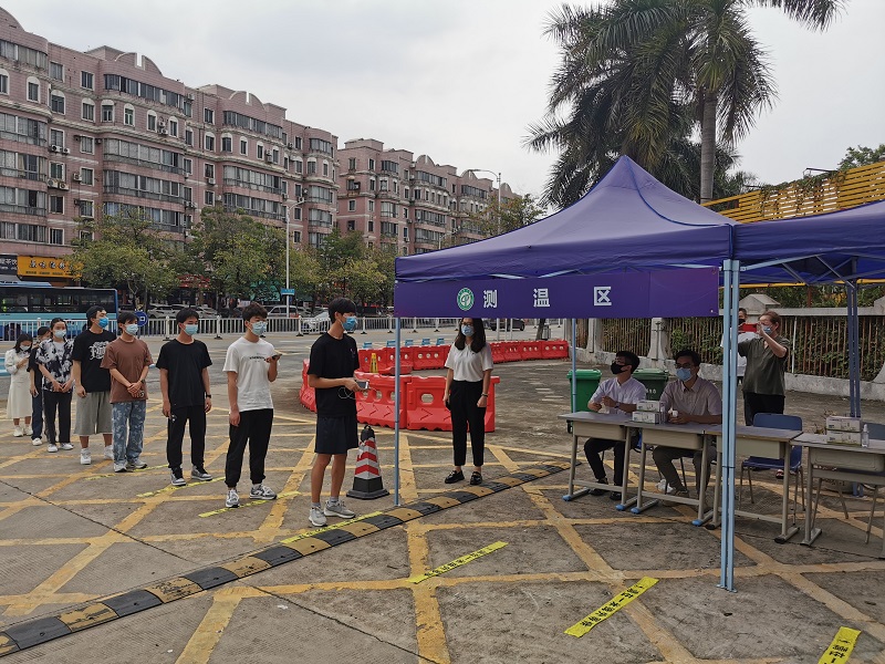 本次演练模拟两个场景,第一个场景是模拟学生在入校流程中出现体温异常的处置情况,第二个场景是模拟学生在报告厅学习时被判定为新冠密接者的处置情况。根据学校相关工作机制,疫情防控工作领导小组在接报后立即启动应急反应机制,模拟即时上报、密切接触者管理、临时观察、医务人员问诊、消毒、转运、进入健康观察区等现场应急处置工作的全过程。