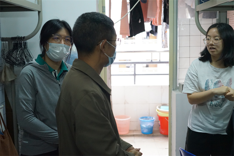 校党委副书记、校纪委书记、监察专员赖日辉现场督导sunbet申博返校工作,校安保处处长张力、sunbet申博管委会副主任彭日新、学工部副部长柳卓君、后勤办副主任王平等职能部门负责人陪同。