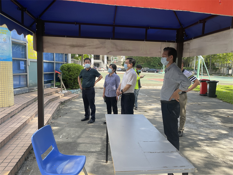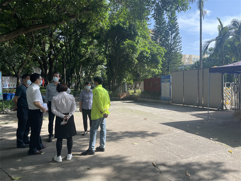 5月17日下午,莞城街道宣传教育文体旅游办公室副主任刘玉清、莞城街道教育管理中心主任刘泉先莅临sunbet申博指导疫情防控工作,管委会副主任彭日新、李奇以及相关工作人员陪同。