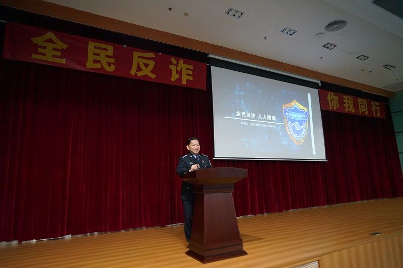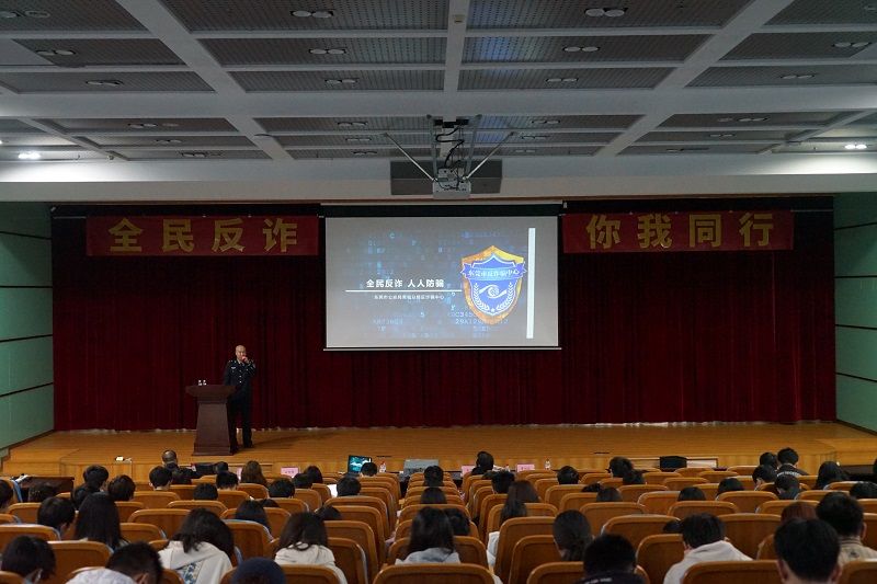 3月30日下午,sunbet申博在学术报告厅开展“全民反诈 你我同行” 反诈专题报告,sunbet申博管委会副主任彭日新,莞城公安局指挥中心主任叶景尧,局刑事侦查大队副大队石智峰,以及sunbet申博各学院班干部、宣传员等出席。