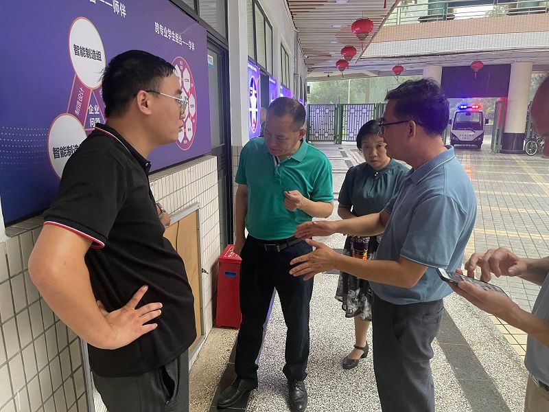 在莞城大队,大队长蒋鹏对黄辉一行的到来表示热烈的欢迎。黄辉一行在蒋鹏的带领下参观了消防车辆装备、消防器材器械、指挥中心,以及消防救援人员工作、训练、生活以及宣传展览等区域,随后在会议室双方就如何进一步做好校园消防安全工作进行座谈交流。