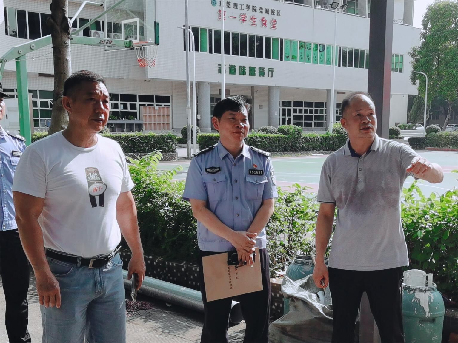 8月18日下午,根据学校安全工作部署,安保部副部长王平带队对sunbet申博开展校园安全检查,特邀莞城公安分局指挥中心主任叶景尧及相关工作人员参加。