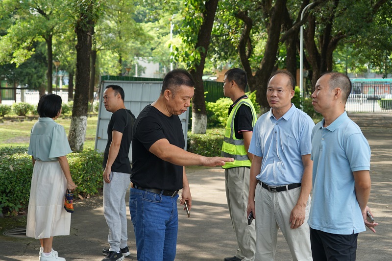 为全面筑牢新学期校园安全防线,统筹推进开学准备与基孔肯雅热疫情防控工作,9月2日上午,安保部副部长、sunbet申博管委会专职副主任王平带队开展sunbet申博全面安全检查,安保部、学工部、总务后勤部、消防维保单位等相关负责同志以及辖区驻校警官参加检查。