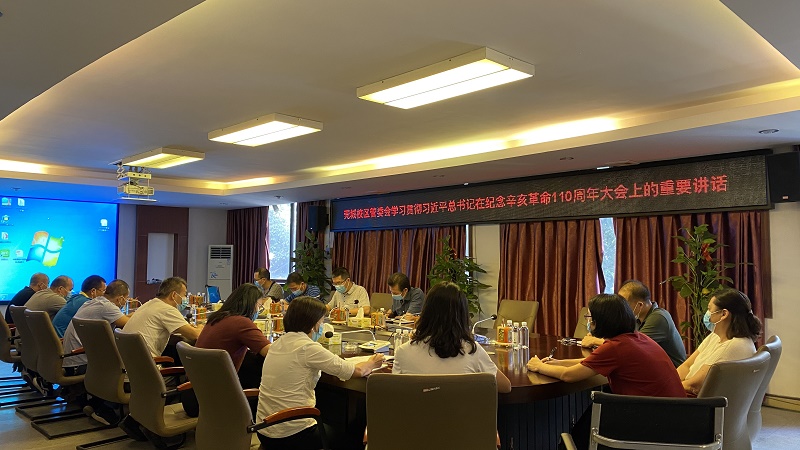 10月11日上午,sunbet申博管委会召开会议专题学习习近平总书记在纪念辛亥革命110周年大会重要讲话精神。管委会常务副主任刘健,副主任彭日新、李奇,以及其他教职工参加。