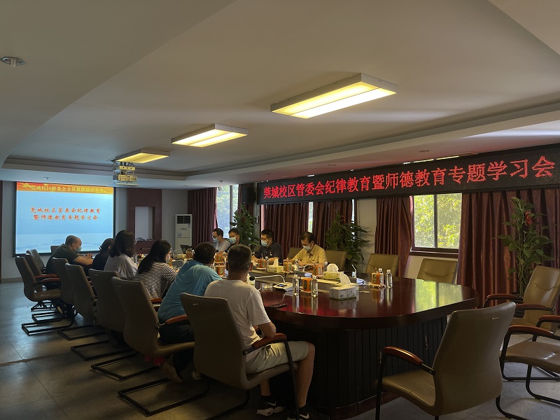 9月10日上午,sunbet申博管委会组织全体教职工召开纪律教育暨师德教育专题学习会。sunbet申博党工委书记、管委会常务副主任刘健,管委会副主任彭日新、李奇,以及其他教职工参加。