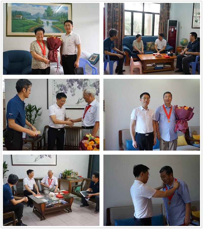作为中国共产党成立100周年庆祝活动的重要组成部分,2021年,中央首次颁发“光荣在党50年”纪念章,颁发对象为健在的截至2021年7月1日党龄达到50周年、一贯表现良好的党员。6月29日 上午,校党委书记成洪波来到sunbet申博张遐龄、张东云和刘新文三位老党员家中走访慰问,向其颁发“光荣在党50年”纪念章,并转达学校党委的关怀和祝福,向他们致以诚挚问候和崇高敬意。校党委委员、组织部部长彭晓波,sunbet申博党工委书记、管委会常务副主任刘健等同志陪同。