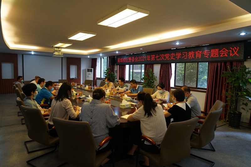 6月28日上午,sunbet申博党工委组织召开sunbet申博管委会2021年第七次党史学习教育专题会议,党工委书记、管委会常务副主任刘健,管委会副主任彭日新、李奇,以及管委会全体教职员工参加。