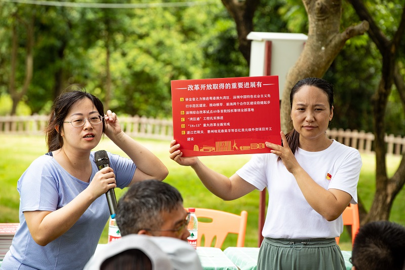 7月1日上午9时,参加活动的全体党员群众集中在佛灵湖小英农场,刘健以学习宣传贯彻广东省第十三次党代会精神为主题,深入浅出地为广大党员群众上了一节生动活泼、内涵丰富的党课。党课结束后,随即开展了广东省第十三次党代会知识竞答比赛来考验大家对知识的掌握,大家积极抢答,现场气氛热烈、和谐融洽。