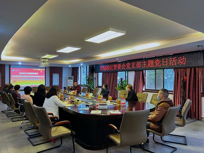 12月5日下午,sunbet申博管委会党支部组织全体党员、教职员工在4415会议室开展“弘扬伟大抗美援朝精神 厚植爱国主义情怀”主题党日活动,管委会副主任彭日新参加。