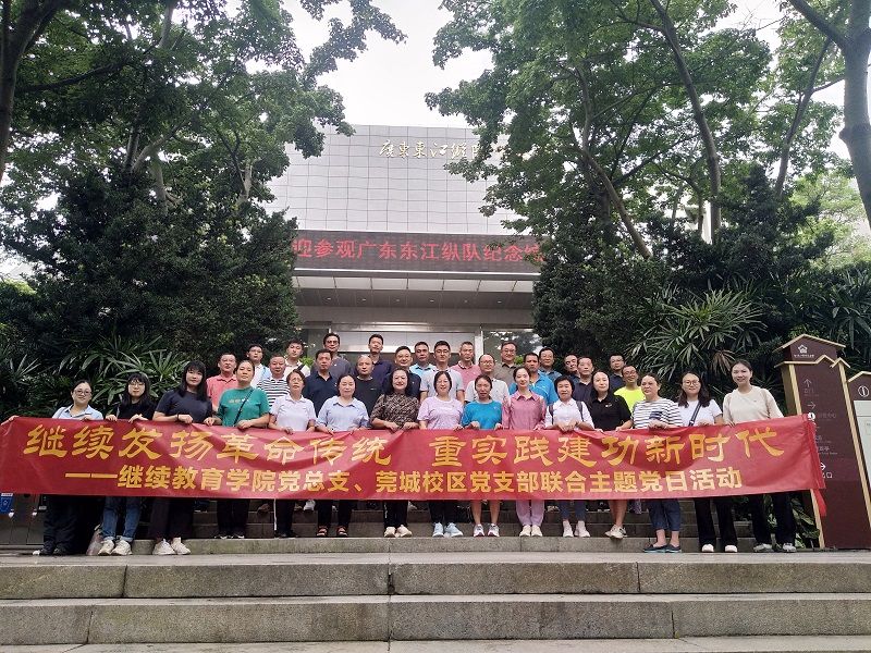 6月20日上午,sunbet申博党支部联合继续教育学院党总支开展“继续发扬革命传统 重实践建功新时代”联合主题党日活动,双方党员同志及部分教职工代表参加,活动主要内容是党员重温入党誓词、参观东江纵队纪念馆。