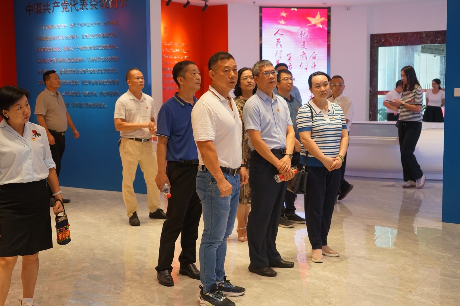 参观队伍在黄江镇党委委员曹大劲等领导陪同下参观了黄江镇党史公园、黄江镇党史主题馆、黄江镇黄牛埔美术馆“书画传廉韵,翰墨颂清风”书画展等。