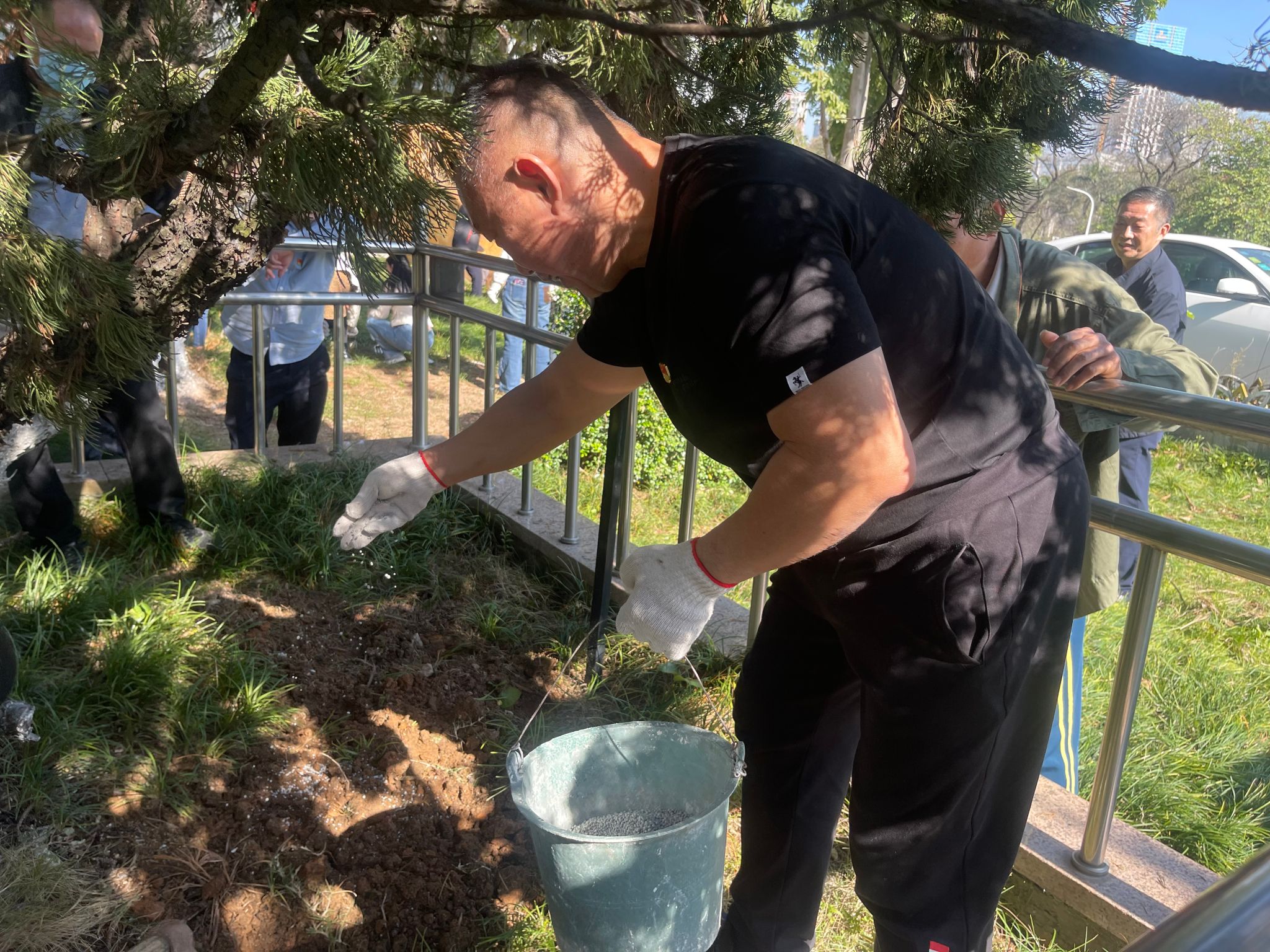 在总务后勤部花木组同事的专业指导下,参加活动的全体党员对sunbet申博人才之星两侧的校园名木及其所在草坪进行撒肥、覆土、浇水、除草等养护,通过本次活动,党员同志们用实际的行动宣传环保精神,引领带动广大师生树立生态环保理念,提高爱绿、护绿意识,共建绿美莞邑。