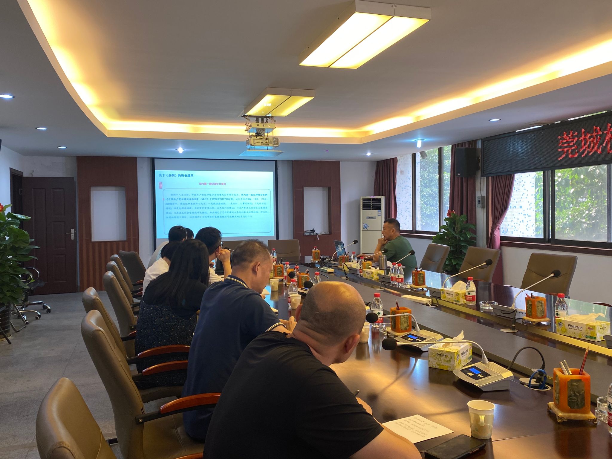 随后王平以党课的形式带领与会党员同志逐章逐条学习《中国共产党纪律处分条例》,党课结束后观看了警示教育片。
